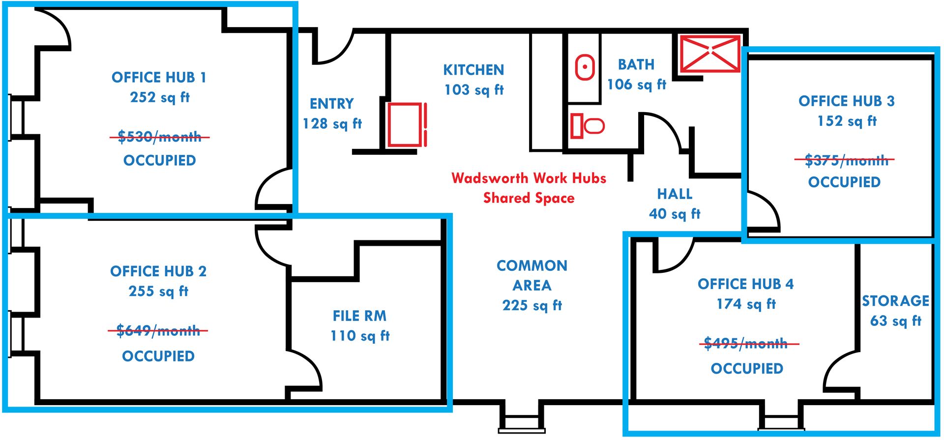 $490/mo. Utilities Included - Suite G connects to Suite F and can be rented together - Occupied